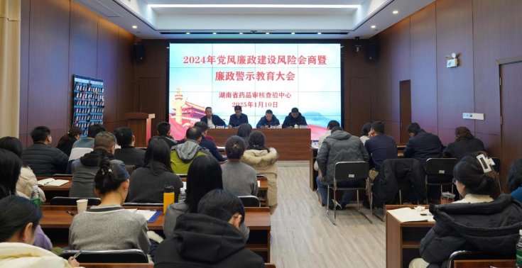 2025年1月10日上午,省药品核查中心组织召开2024年党风廉政建设风险会商暨廉政警示教育大会,中心党总支书记、主任崔剑桥主持会议。省纪委监委驻省市场监管局纪检监察组纪律审查一处处长李宇到会指导,省局党组成员、副局长覃永忠出席会议并讲话,省局机关纪委书记赵超琪参加会议。