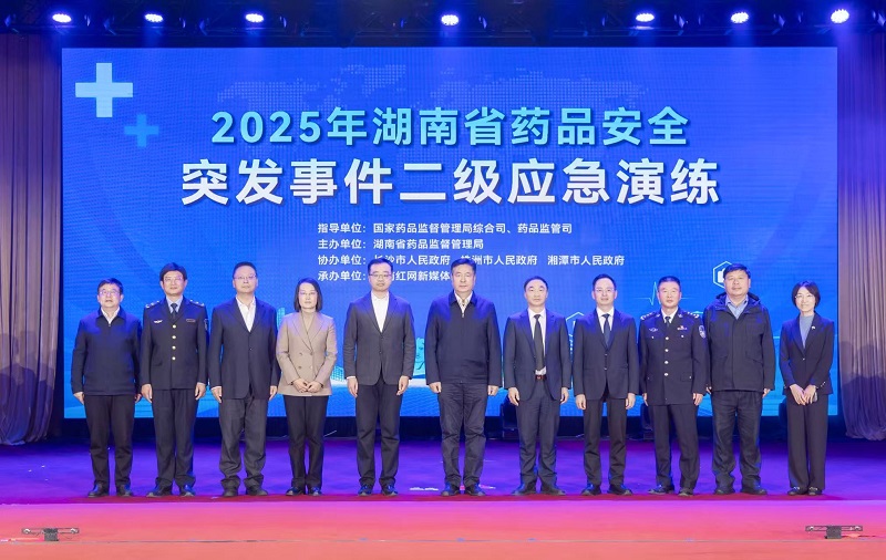 2025年12月1日,湖南省药品安全突发事件二级应急演练在长沙成功举行。省政府办公厅一级巡视员孟祥定,莅临现场宣布活动开始,并亲自坐镇指导、参与演练活动。省市场监管局党组成员、省药品监管局党组书记、局长欧阳志刚致辞。国家药监局综合和规划财务司副司长顾光出席活动并对演练成效给予充分肯定。
