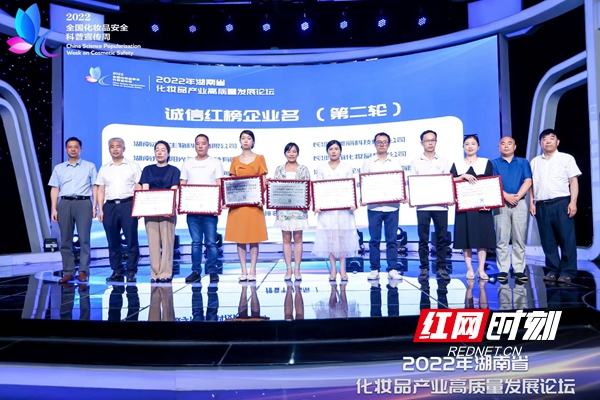 活动现场发布了湖南美业频道“2021年度湖南省化妆品经营行业诚信榜单”,水羊集团股份有限公司等17家企业荣获湖南美业频道“2021年度湖南省化妆品经营行业诚信企业”称号。省药品监督管理局与中南林业科技大学签订了共同建设化妆品监管科学研究基地战略合作协议。省植物提取物协会理事长张宝堂介绍了化妆品原料植物提取工艺以及在化妆品应用方面的探索研究,省化妆品专家库专家、湖南山水检测有限公司总经理何欣远分享了化妆品功效宣称评相关知识。
