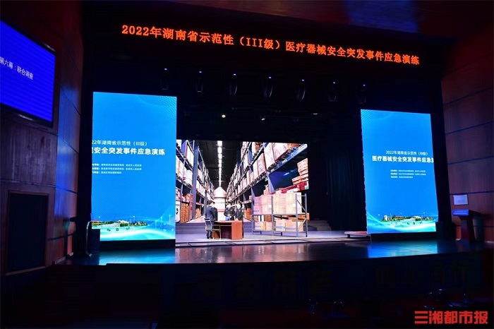 本次演练采取场景预拍和现场舞台演练相结合的方式,共有事件发生与报告、事件调查、应急响应、舆情处置、新闻发布、后期处置等10个科目。演练模拟娄底两所医院发生一次性使用静脉留置针引发医疗器械群体性突发事件,经过紧急处置和调查处理,监管部门迅速控制所有可疑不合格医疗器械,并查处违法违规行为。同时,经过积极救治,患者康复。