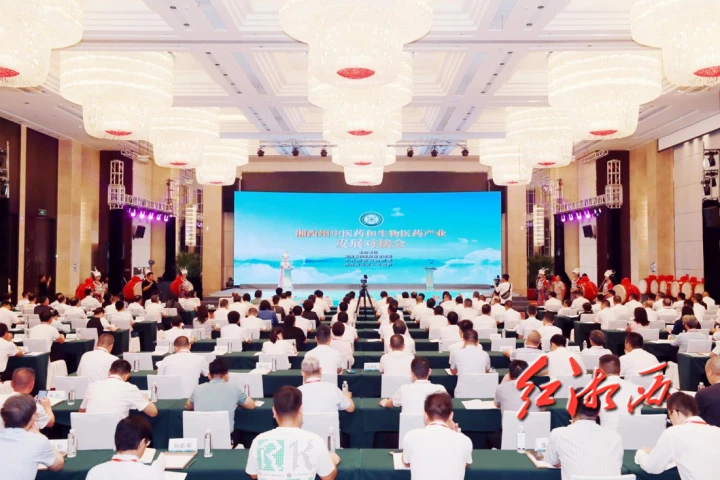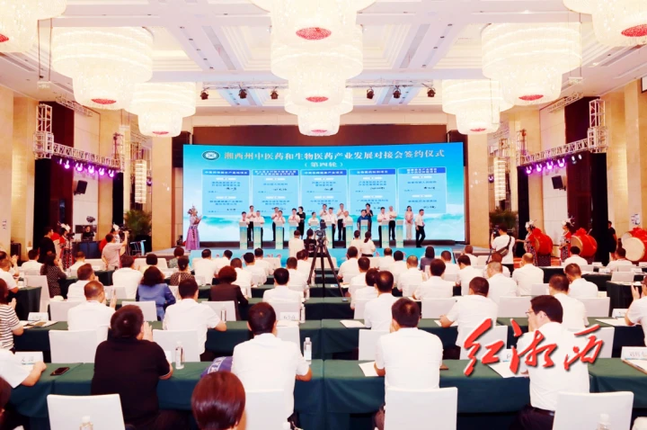 州领导向邦伟、向宏国、彭延敏、邓建英出席会议,130余位中医药和生物医药企业负责人受邀参会。会上,副州长彭延敏作湘西州中医药和生物医药产业发展招商推介,20家企业与我州签订项目合作协议,签约企业代表作了发言。