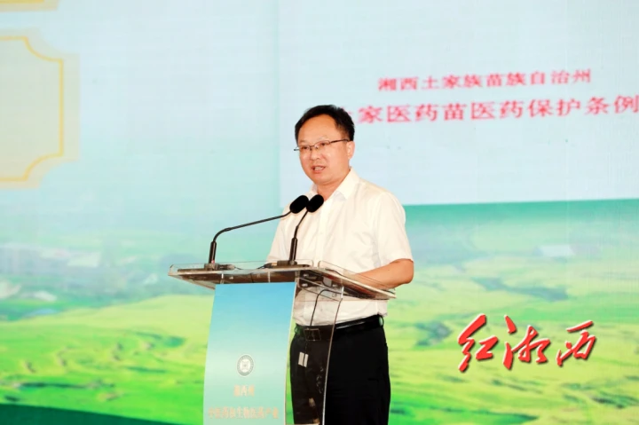 虢正贵代表州委、州政府对参加会议的嘉宾表示欢迎和感谢。他说,本次大会是合作之约、共赢之旅,为我州推动民族医药事业高质量发展带来了新机遇。生物医药产业是关系国计民生和国家安全的战略性新兴产业,我州要深入贯彻习近平总书记关于中医药保护传承发展的重要讲话重要指示精神,立足资源优势,加快构建独具湘西特色的民族医药产业体系,为促进中医药传承创新发展、建设健康湖南健康中国作出湘西贡献。要营造良好环境,以真诚招商、以诚信引资,携手企业共同把土家族苗族医药宝贵财富继承好、发展好、利用好,奋力打造湘西民族医药特色品牌。要紧跟时代趋势,围绕政策走向和市场导向,做好生物医药产业这篇大文章,加快把湘西生物医药产业打造成为百亿级产业集群。要把握利好形势,促进创新要素流动起来、产业要素积聚起来、资本要素活跃起来,在合作发展中互惠互利、实现共赢,奋力绘就现代化新湘西精彩画卷。